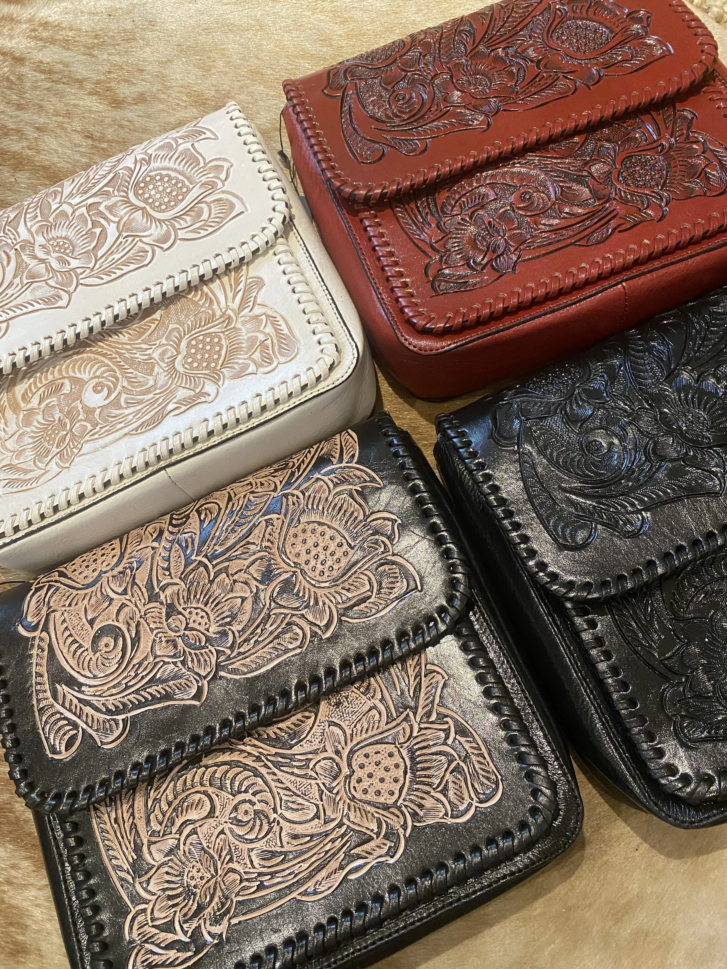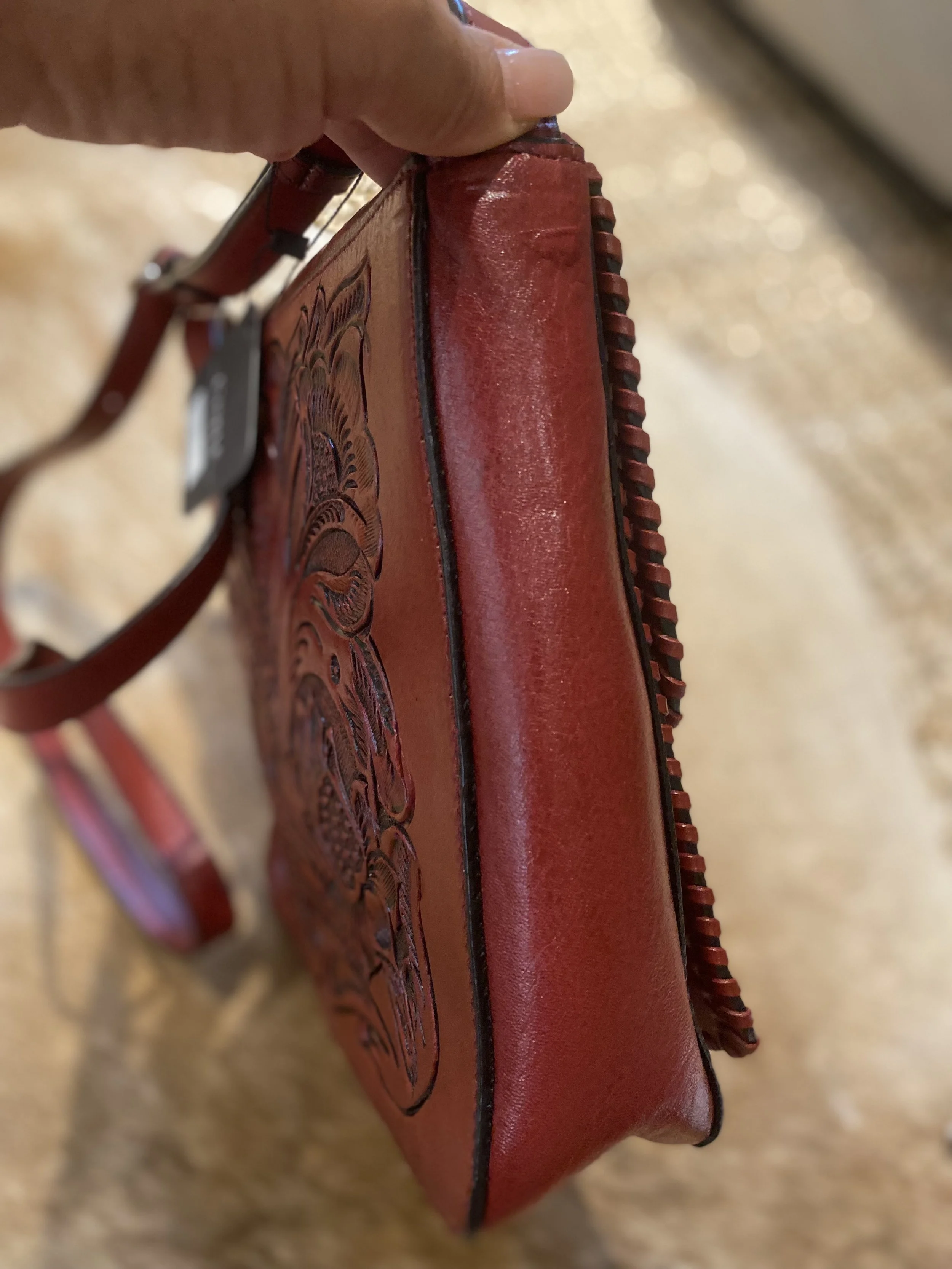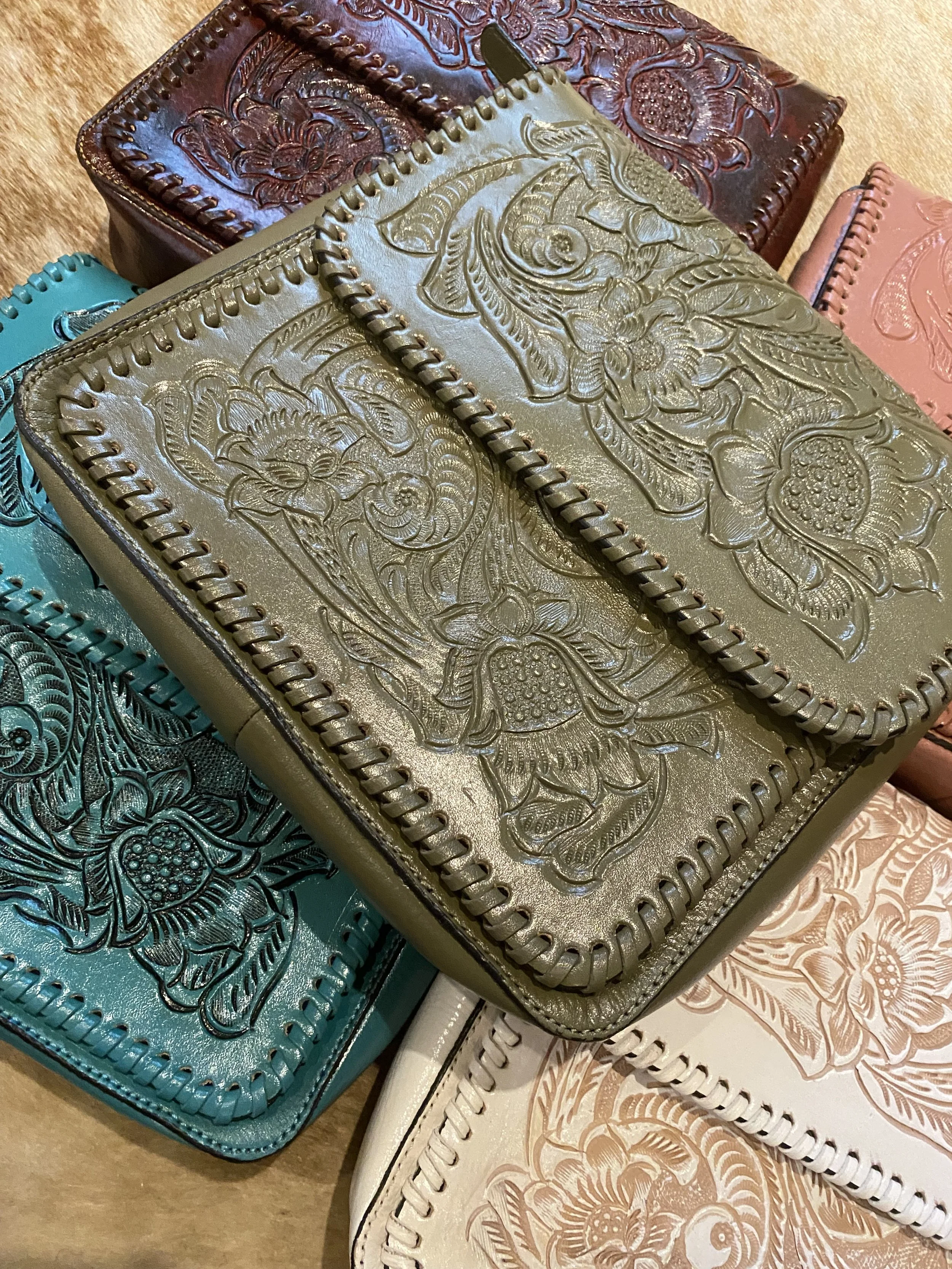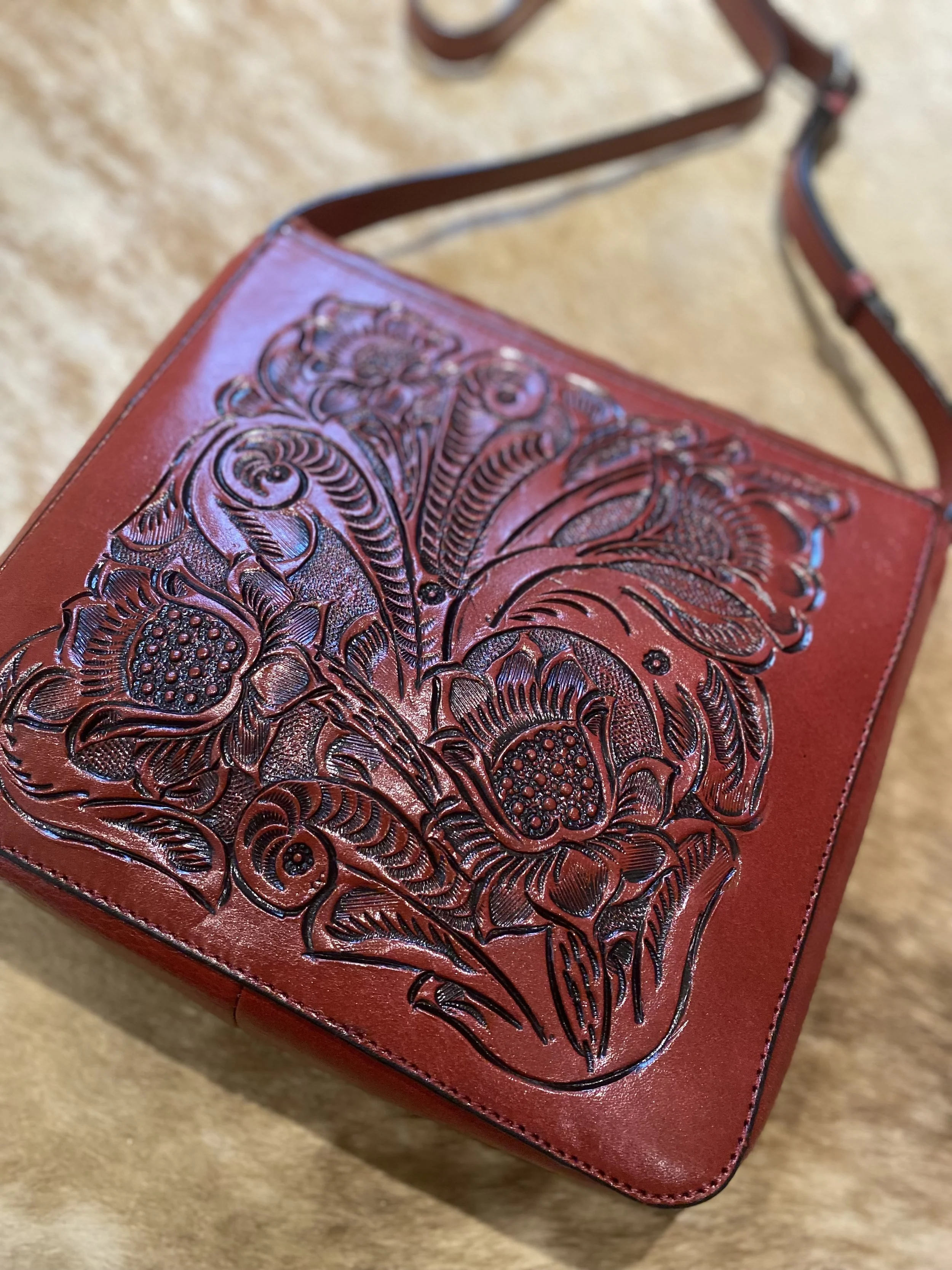 Crafted for both style and function, La Mensajera is the perfect everyday crossbody bag. This medium-sized purse features a slim silhouette with thoughtfully designed interior compartments to keep your essentials organized. Made from soft leather and intricately tooled on both sides.